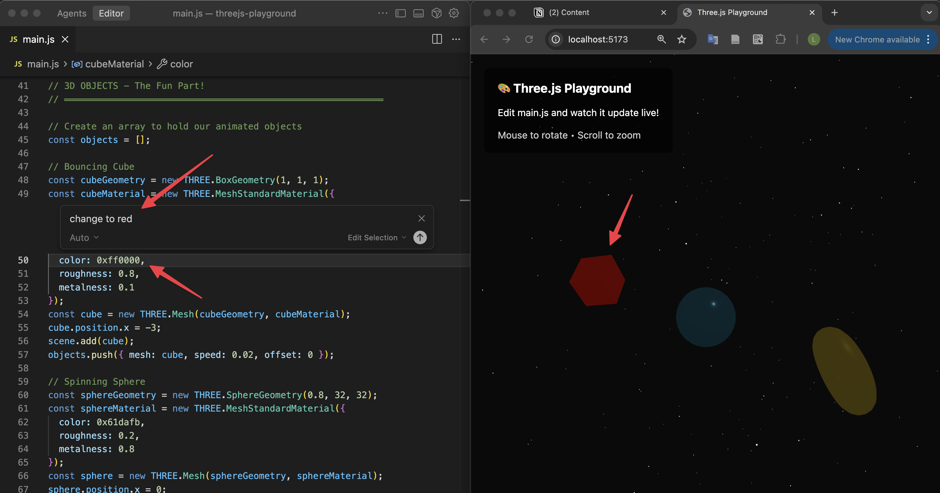 Despite these 2 examples being a bit different, one involves agency on the part of the user (editor chat example) and the other doesn't, they illustrate the idea that interfaces can integrate strategic assistance directly embedded in the scenario where the skill is developed (in these cases would be programming and 3D modelling).